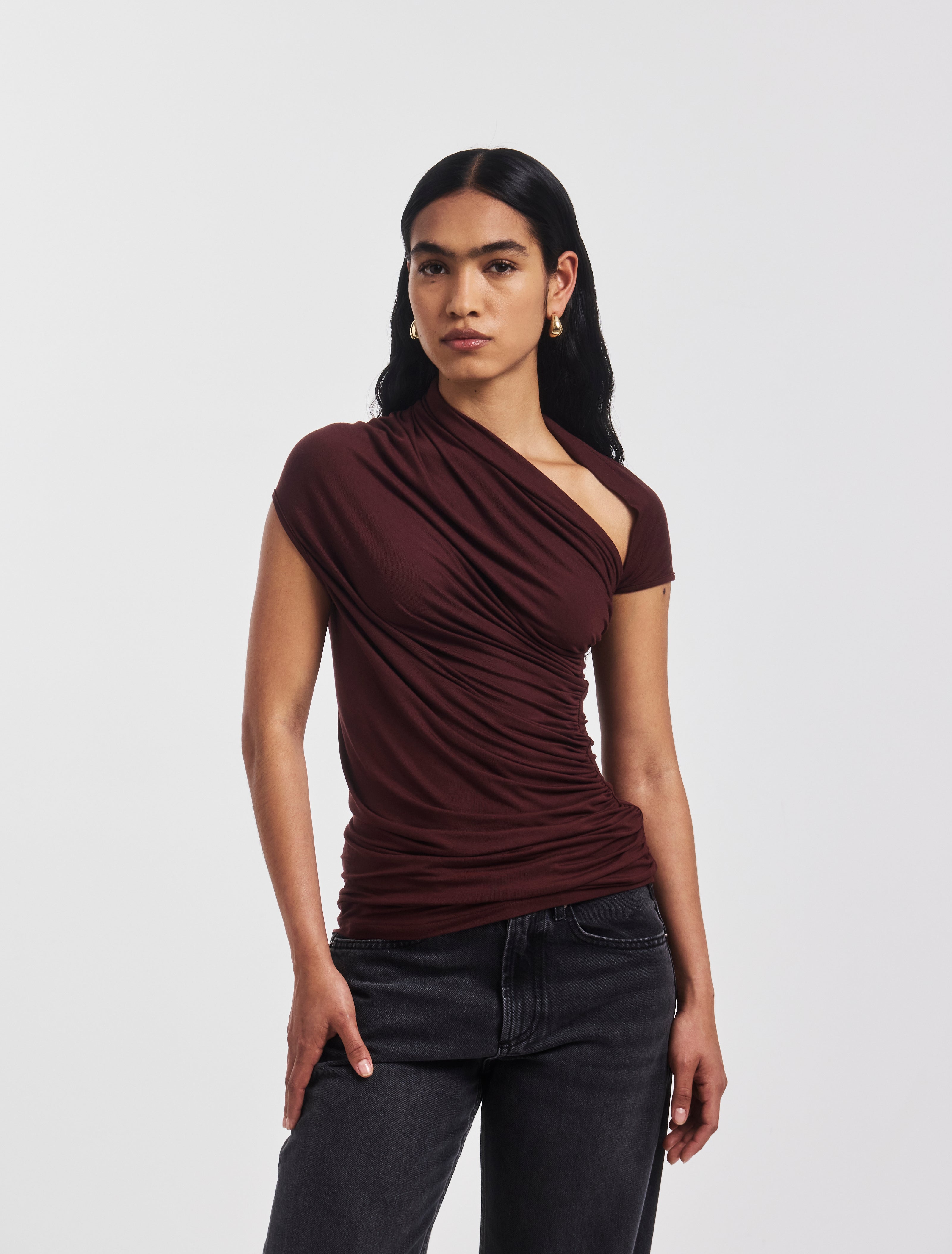 Designed in a responsible MicroModal mix, this draped short-sleeve top combines comfort with elegance. Featuring a flattering gathered design across the front and a unique asymmetric neckline, style it with your favourite pair of jeans for an effortlessly refined look.