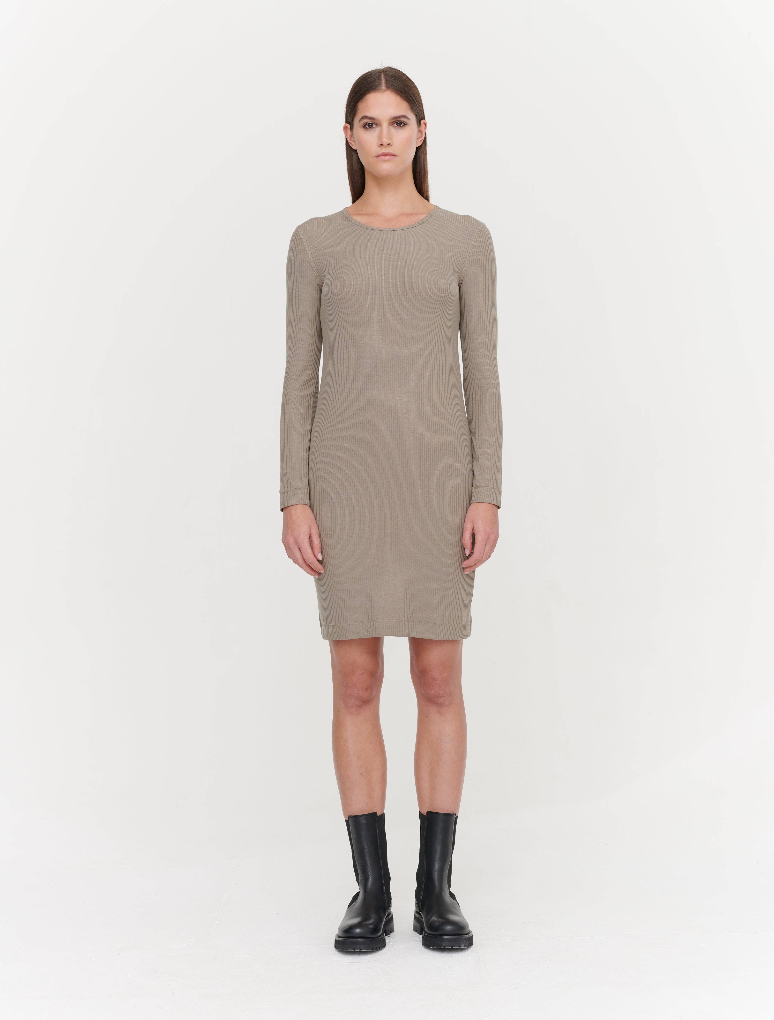 Crafted from soft, sustainable Tencel™, this long sleeve dress is a timeless addition to your forever wardrobe. It’s cut above the knees for a slim fit with a touch of stretch and features a classic crew neck with ribbed binding. Style with high-knee boots in winter or heels in the warmer months.
