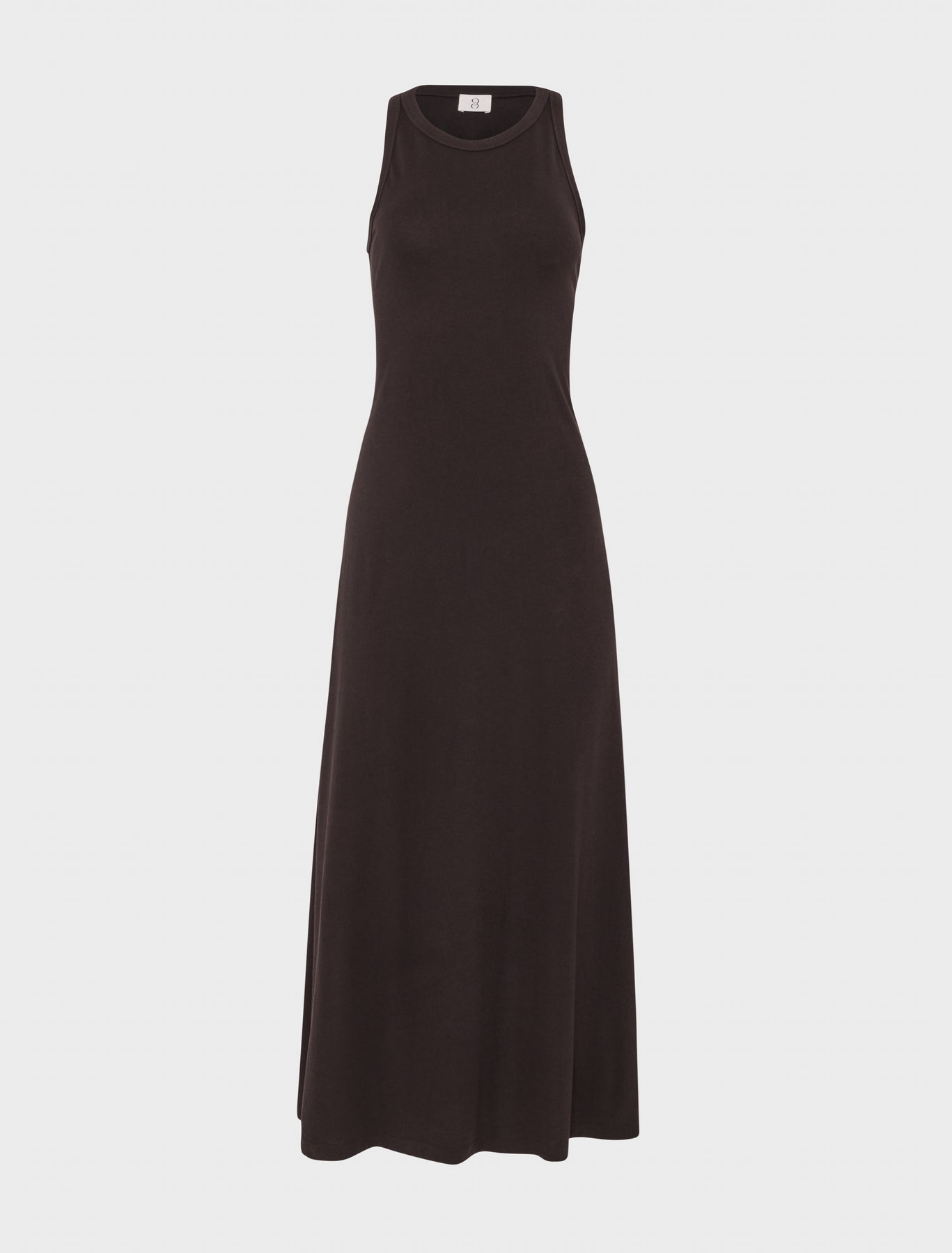 A minimal dress with a sophisticated twist. Crafted from a blend of premium organic cotton and breathable MicroModal, the full-length sleeveless dress is cut for a comfortable fit and features a crew neck and a gathered cut-out at the back. Wear it from day to night; whatever the occasion.