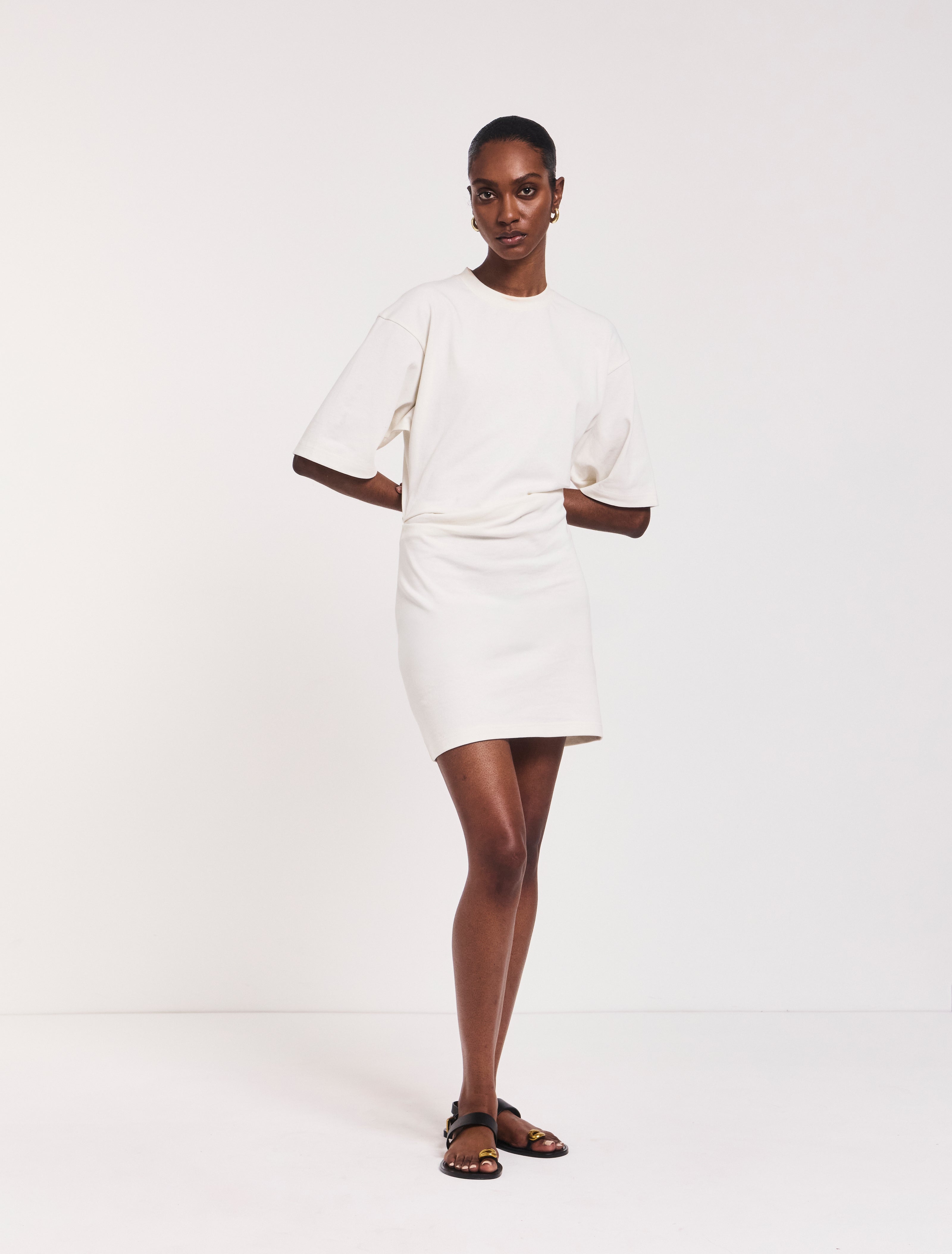 An off-duty staple, redefined. This oversized T-shirt dress is cut from organic cotton jersey for a soft, structured silhouette that skims the body just right. It features dropped shoulders and flattering ruching through the body for subtle elevation. Wear it solo or layered over tights—this one does the heavy lifting for your everyday wardrobe.