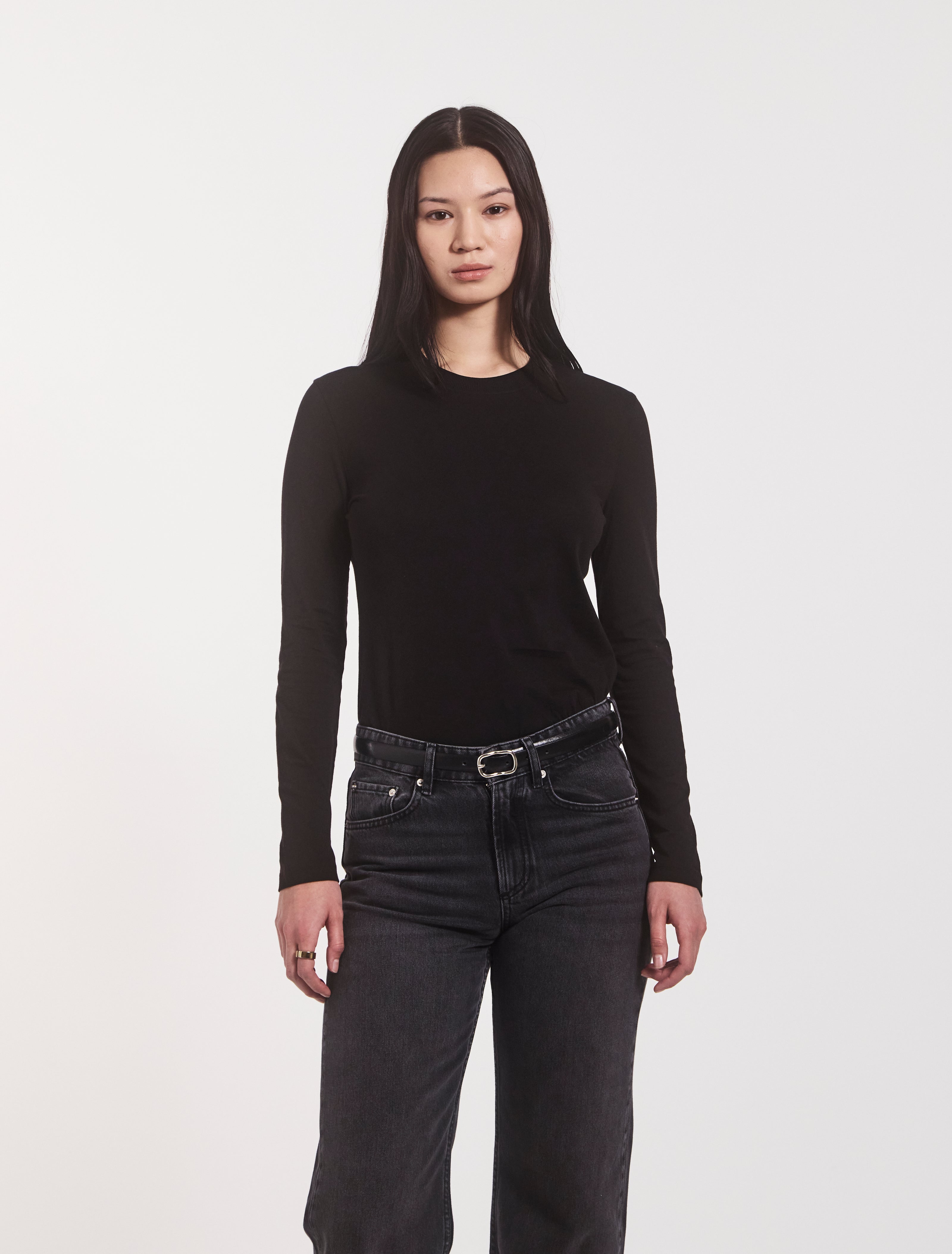 Lightweight Cotton Long Sleeve T-Shirt in Black