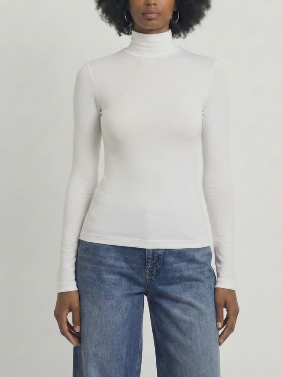 Classic Rib High Neck Top in White