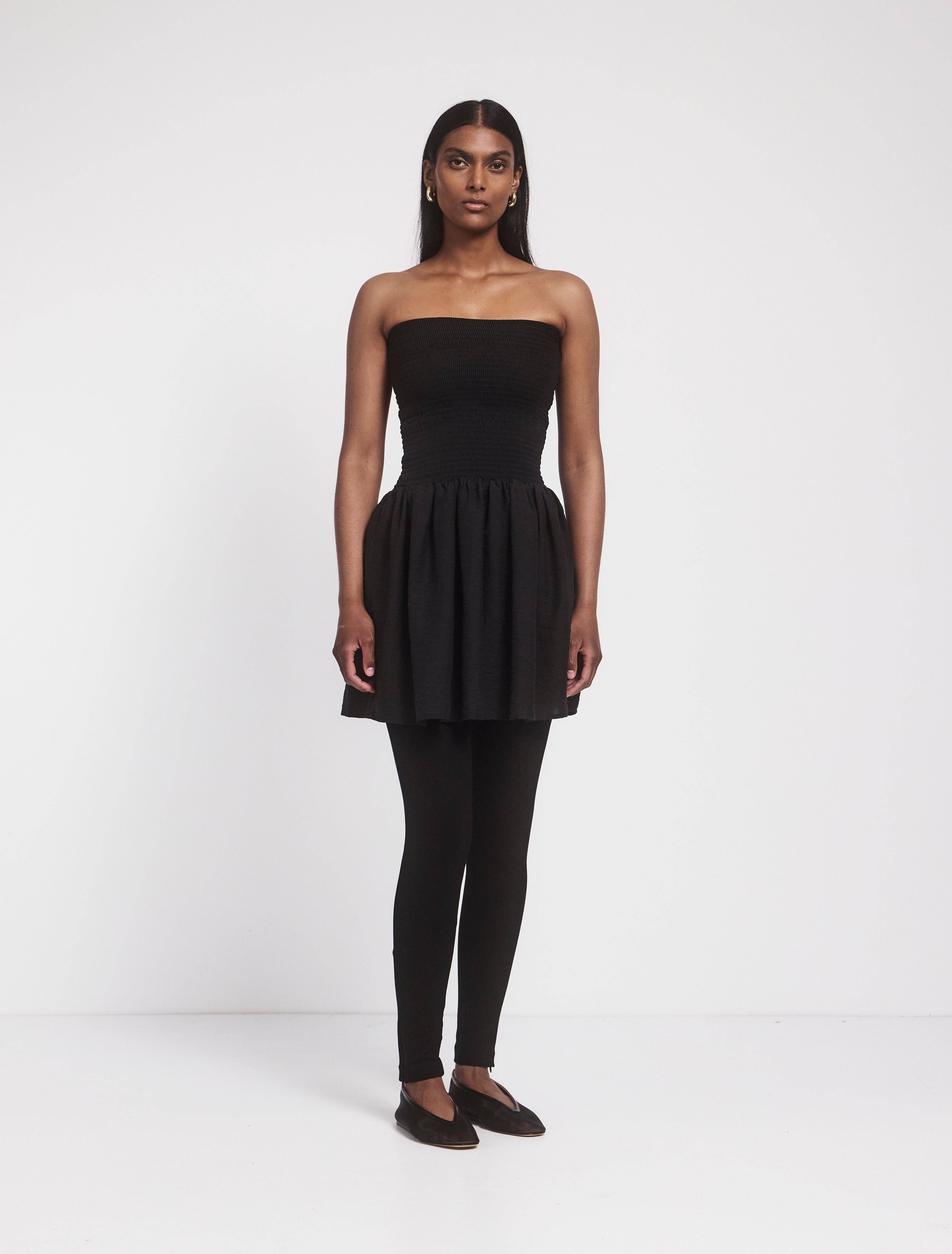 This strapless smocked top combines style with comfort, crafted from a woven TENCEL™ mix that provides a soft yet structured feel. The smocked bodice offers a secure, flattering fit, and the subtle flare at the hem adds movement. Perfect for pairing with jeans or layering over leggings, this versatile top is a staple for a relaxed yet refined style.