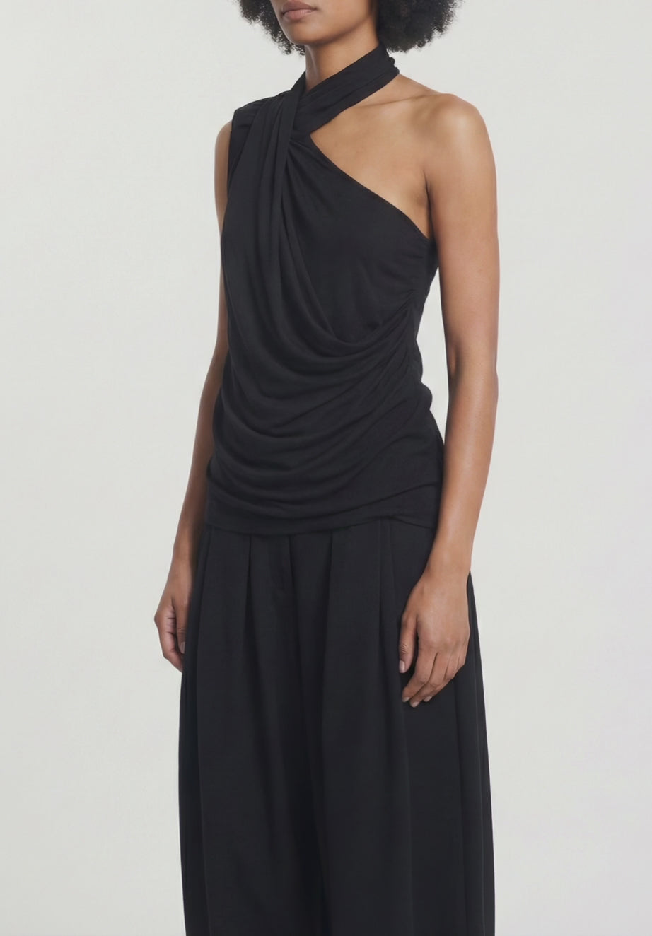 Zora Drape High Neck Top in Black