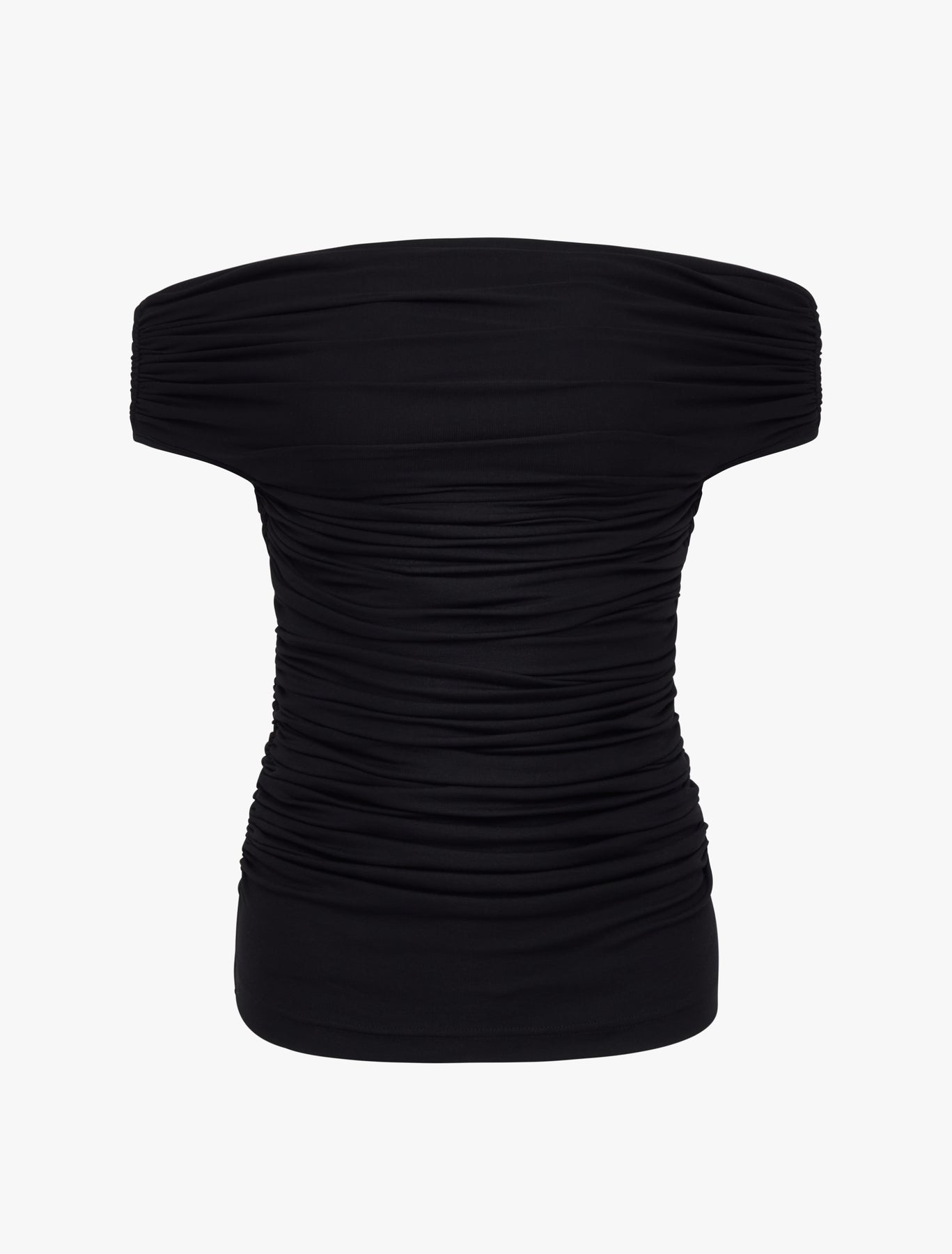 This off-the-shoulder ruched top is the perfect balance of elegance and minimalism. Made from a soft and sustainable Micromodal, it drapes beautifully around the shoulders and hugs the body with subtle ruching. A versatile piece that transitions effortlessly from casual to evening wear, wear it with jeans or tailored trousers.