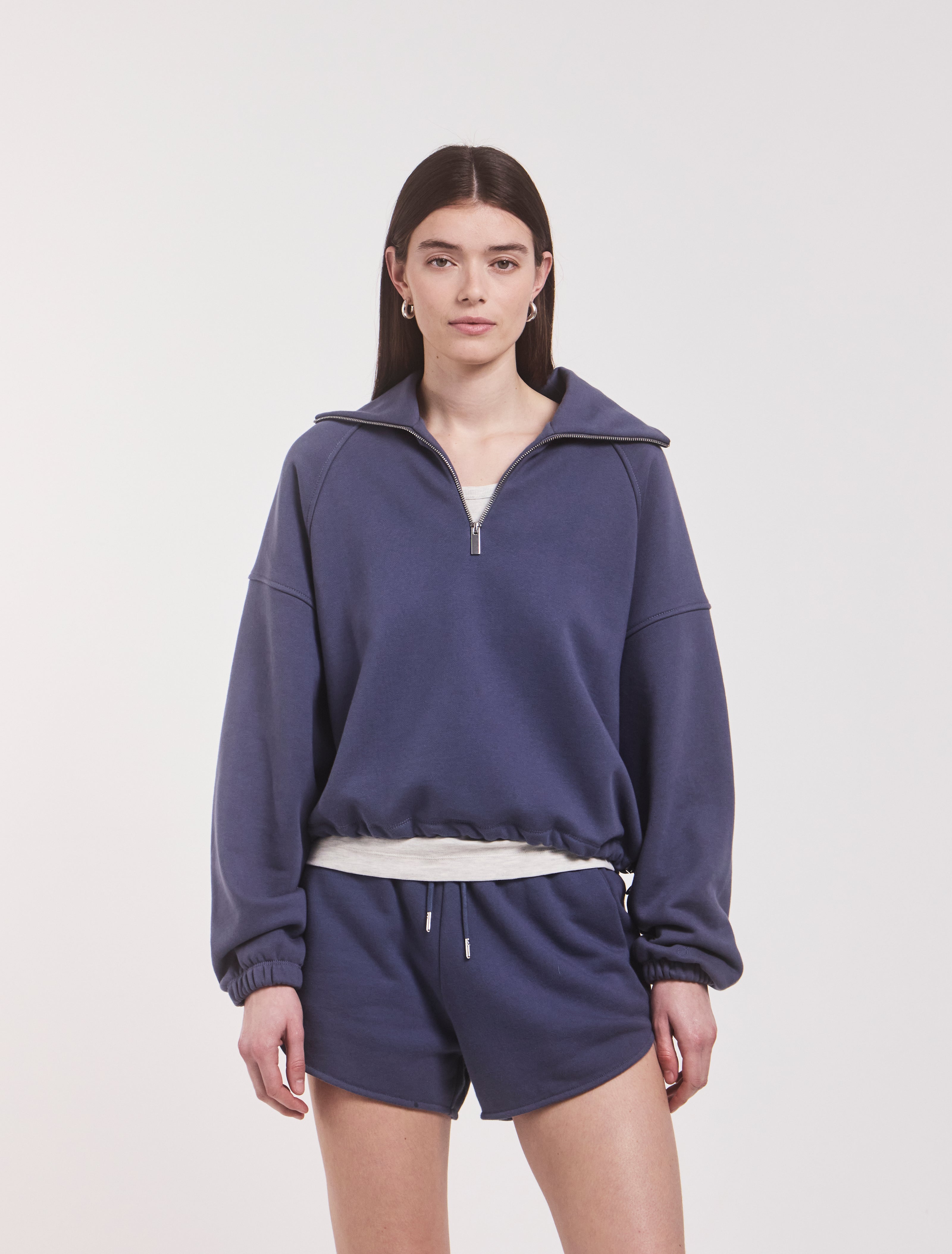 This signature sweatshirt combines comfort with the style of athleisure wear. Cut from organic cotton in a relaxed shape, the sweat has dropped shoulders, long, cuffed sleeves and a half zip pointed collar that nod to its 90s roots. Wear it with the matching pants.