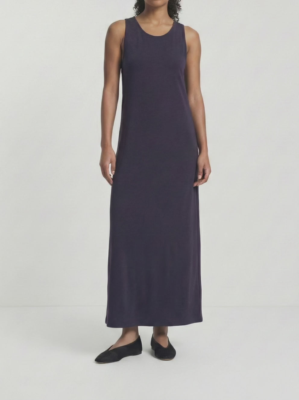 Maxi dress made from mid-weight organic cotton and cut for a fluid, billowy silhouette. The sleeveless dress features; scoop neck and a twisted back detailing. Wear it for warm-weather events with flat or heeled sandals.