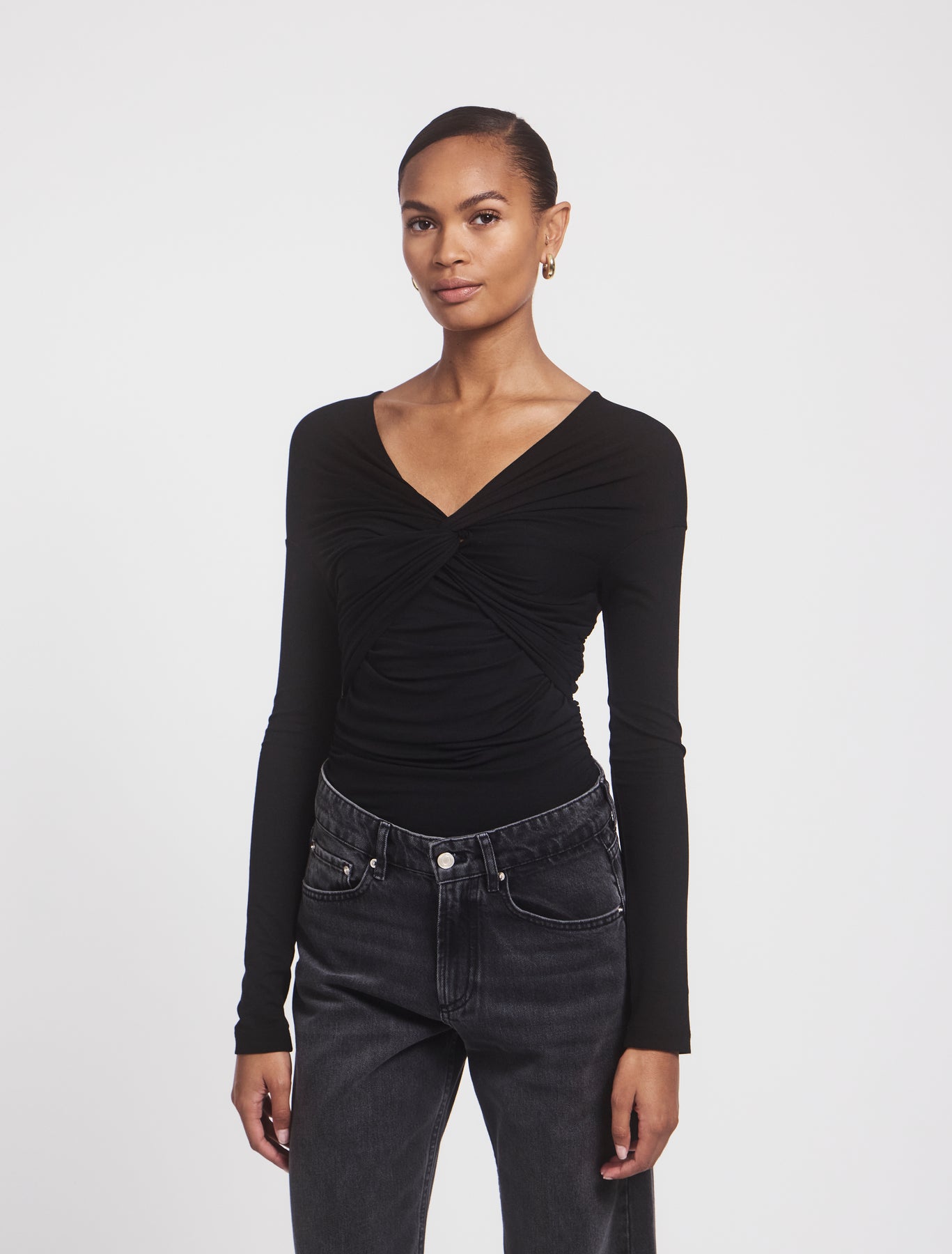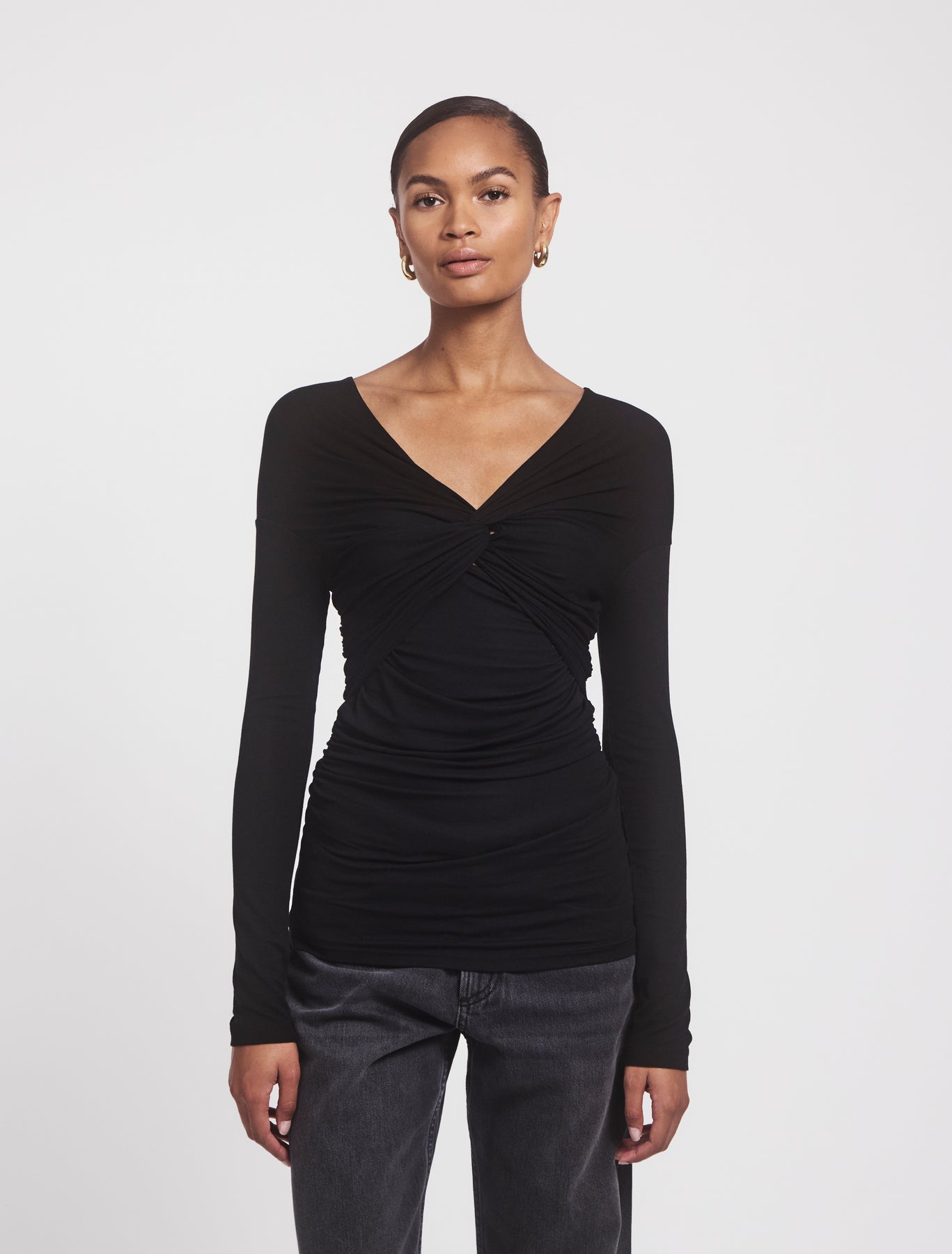 Vesta Micromodal Knot Long Sleeve Top in Black