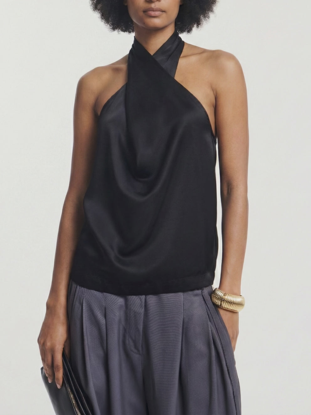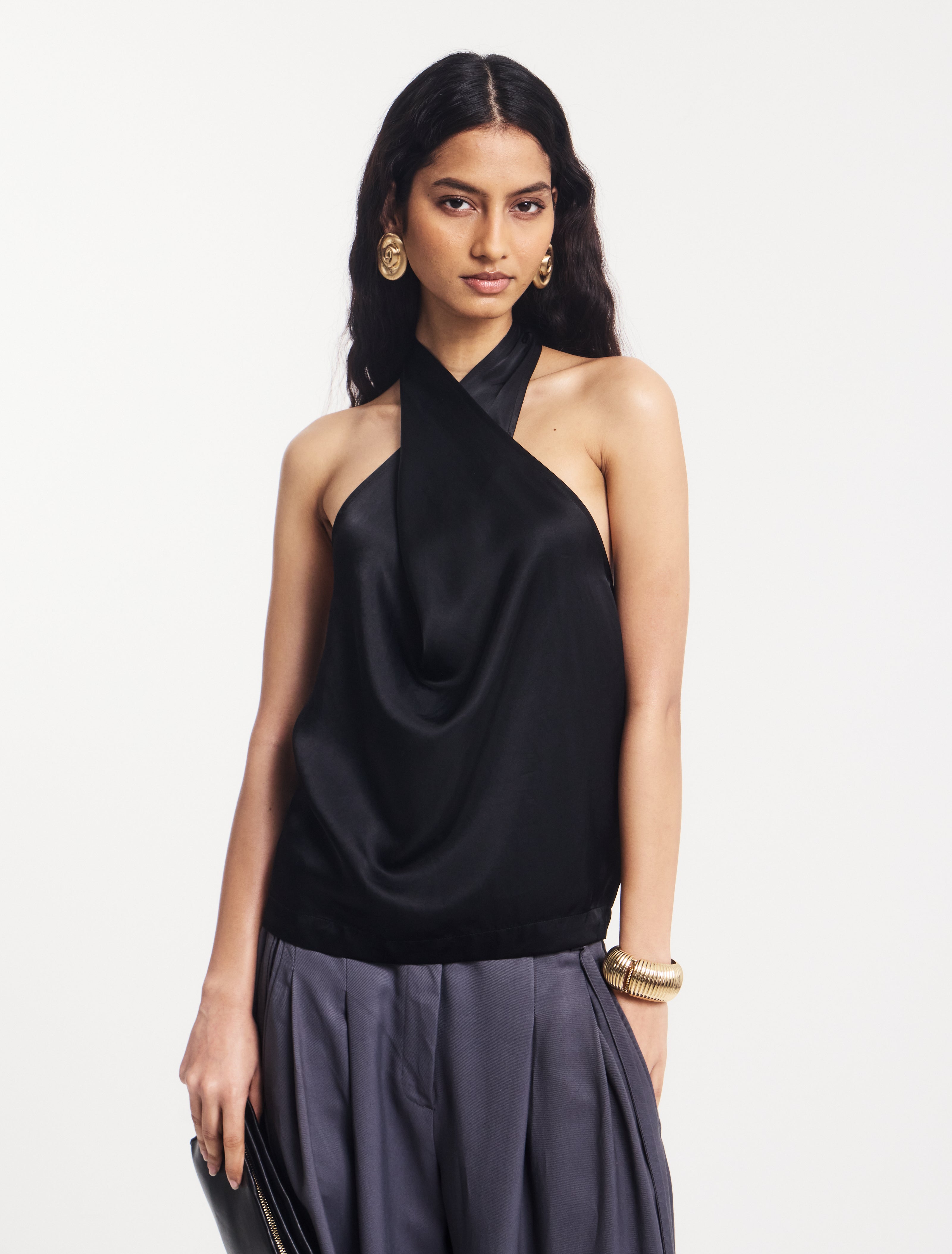 Cleo Wrap Halter Top in Black