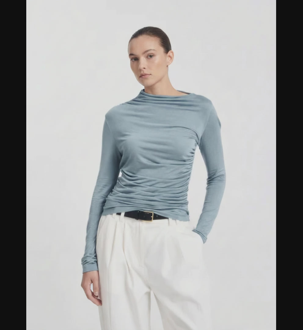 Iphis Draped Long Sleeve Top in Powder Blue