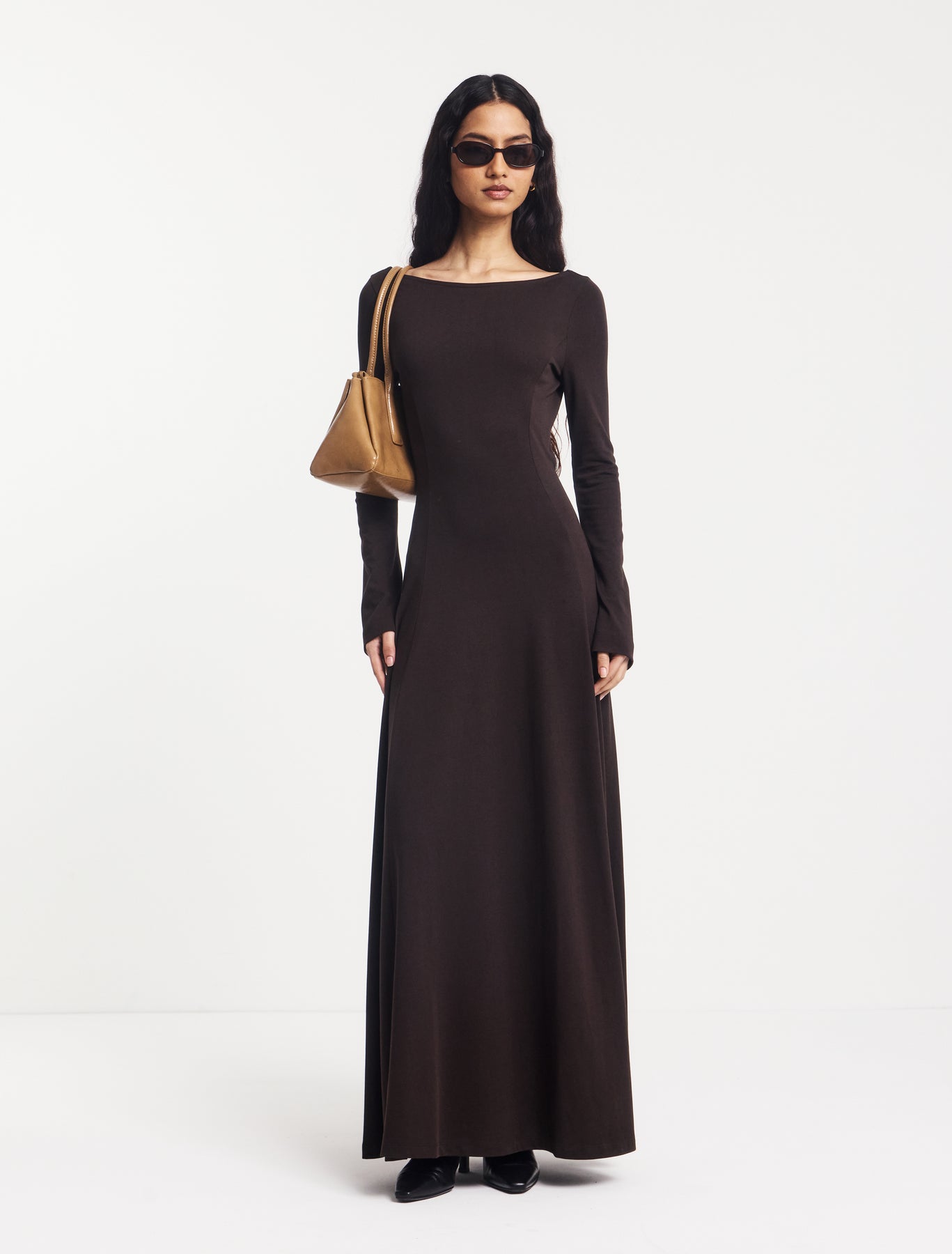 Roxie Scoop Back Maxi With Princess Seams in Bitter Chocolate