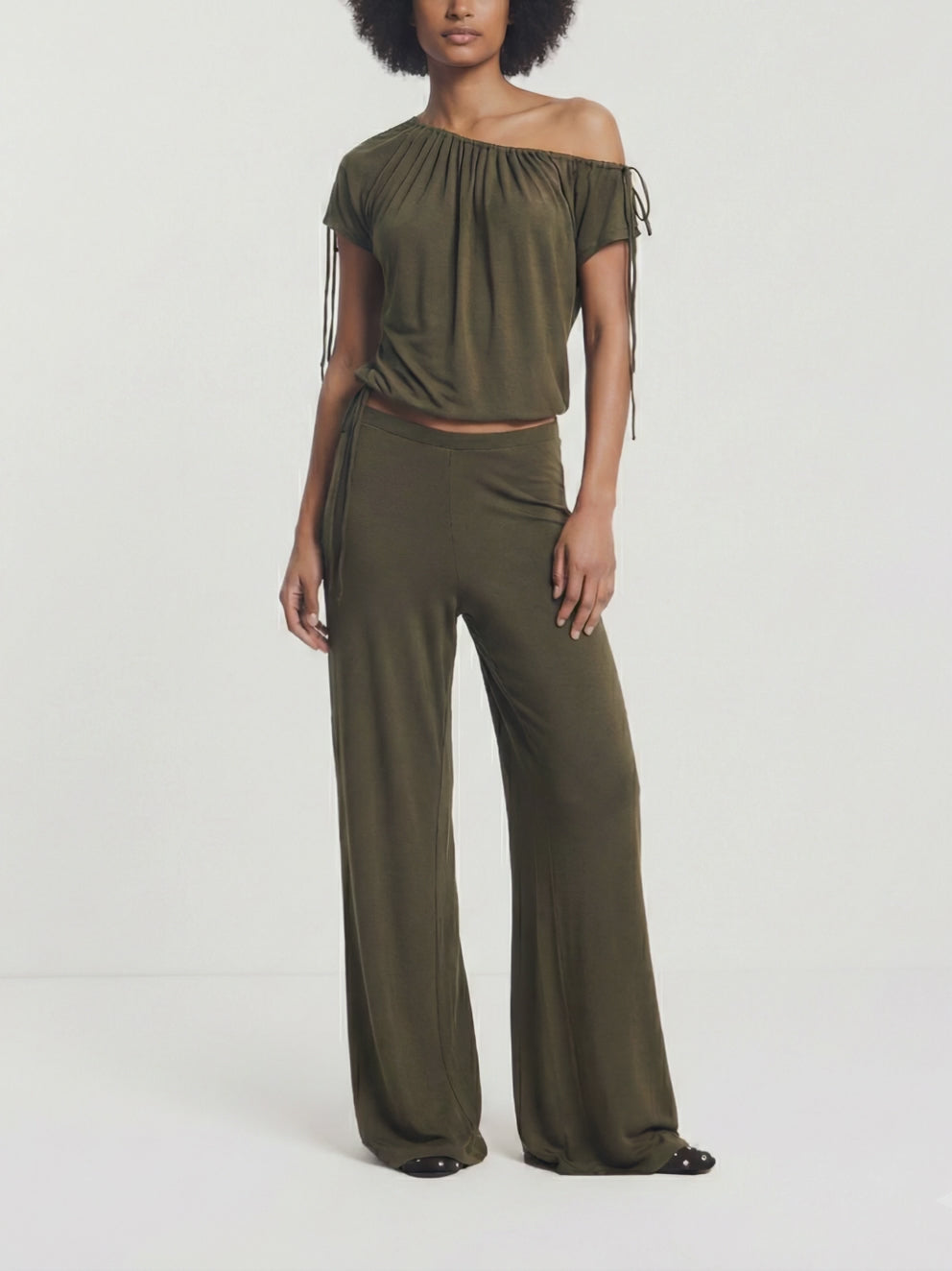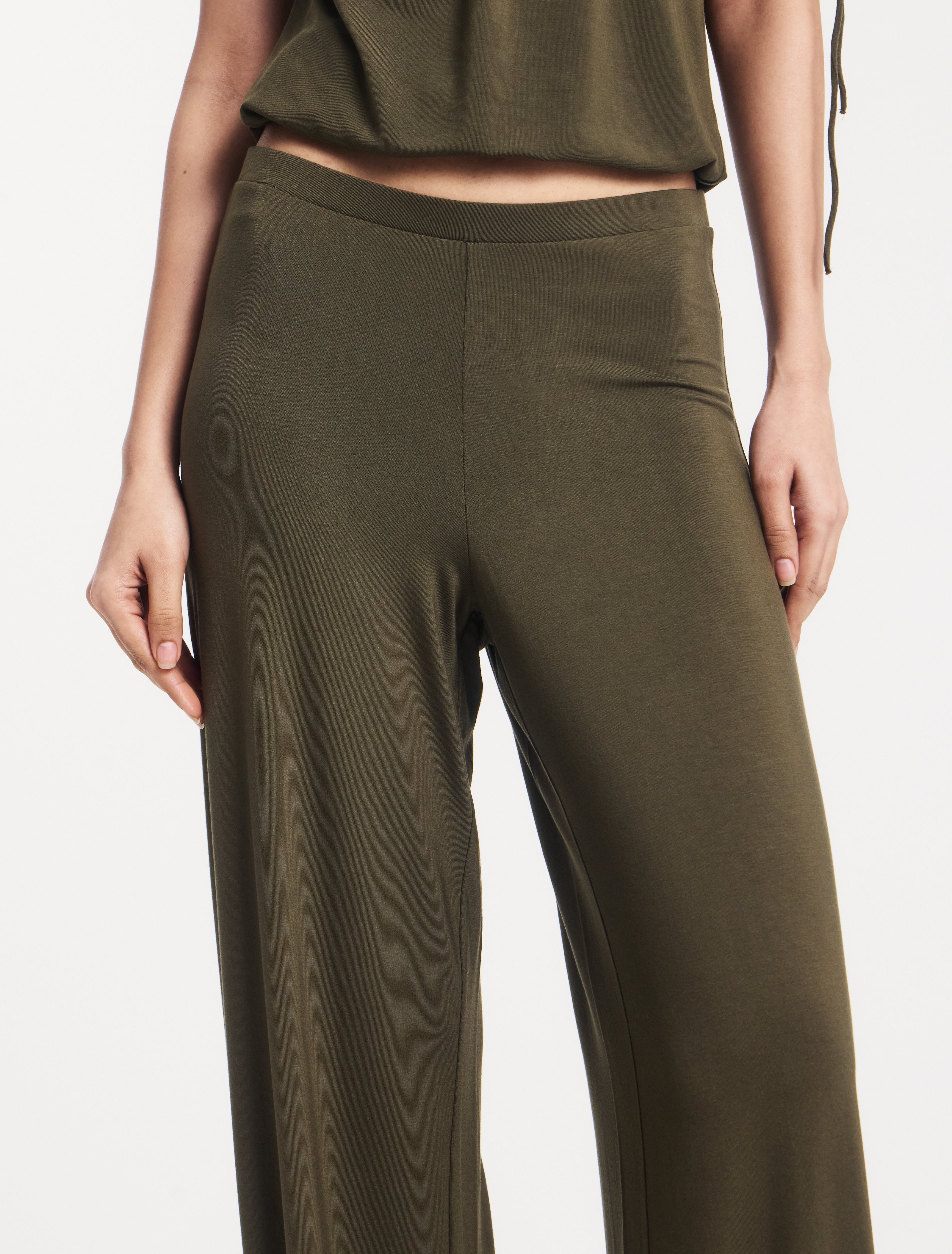 Wide-leg flow for ease. The Clover Wide Leg Bottom offers a relaxed wide leg in stretch jersey. Pair with matching MARLOWE DRAW CORD TEE for lounging. Each purchase you make helps us give back 90% of our profits to our people and causes we believe in.