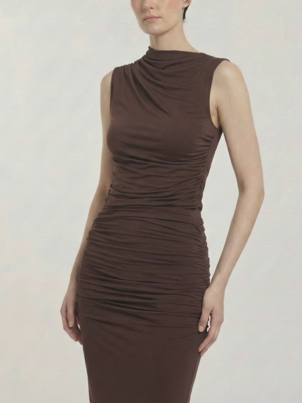 Sleek, sculptural, and effortlessly refined, this sleeveless high-neck top is designed with our signature draping for a flattering, form-fitting silhouette. Crafte... Read More