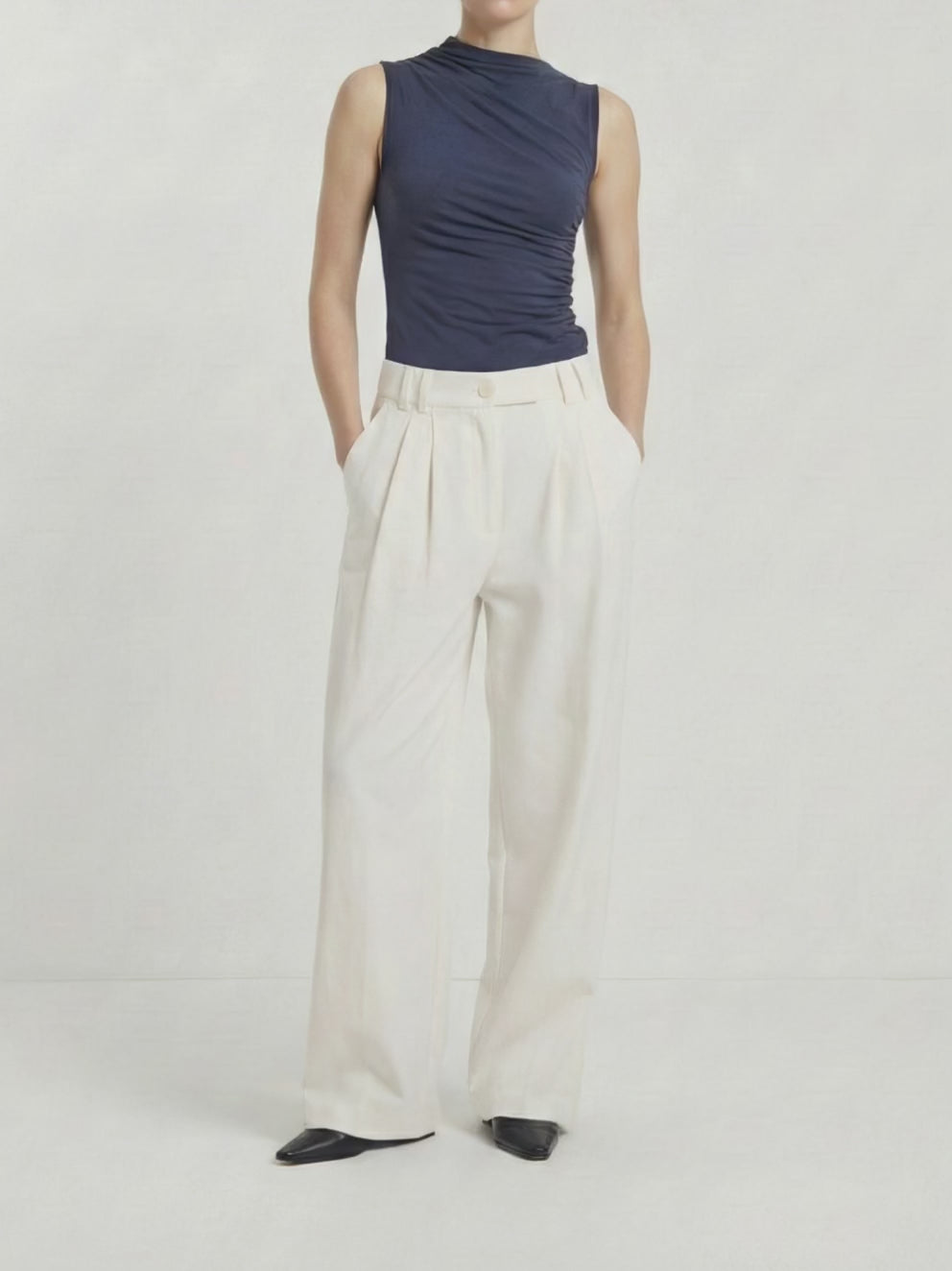 Sleek, sculptural, and effortlessly refined, this sleeveless high-neck top is designed with our signature draping for a flattering, form-fitting silhouette. Crafte... Read More