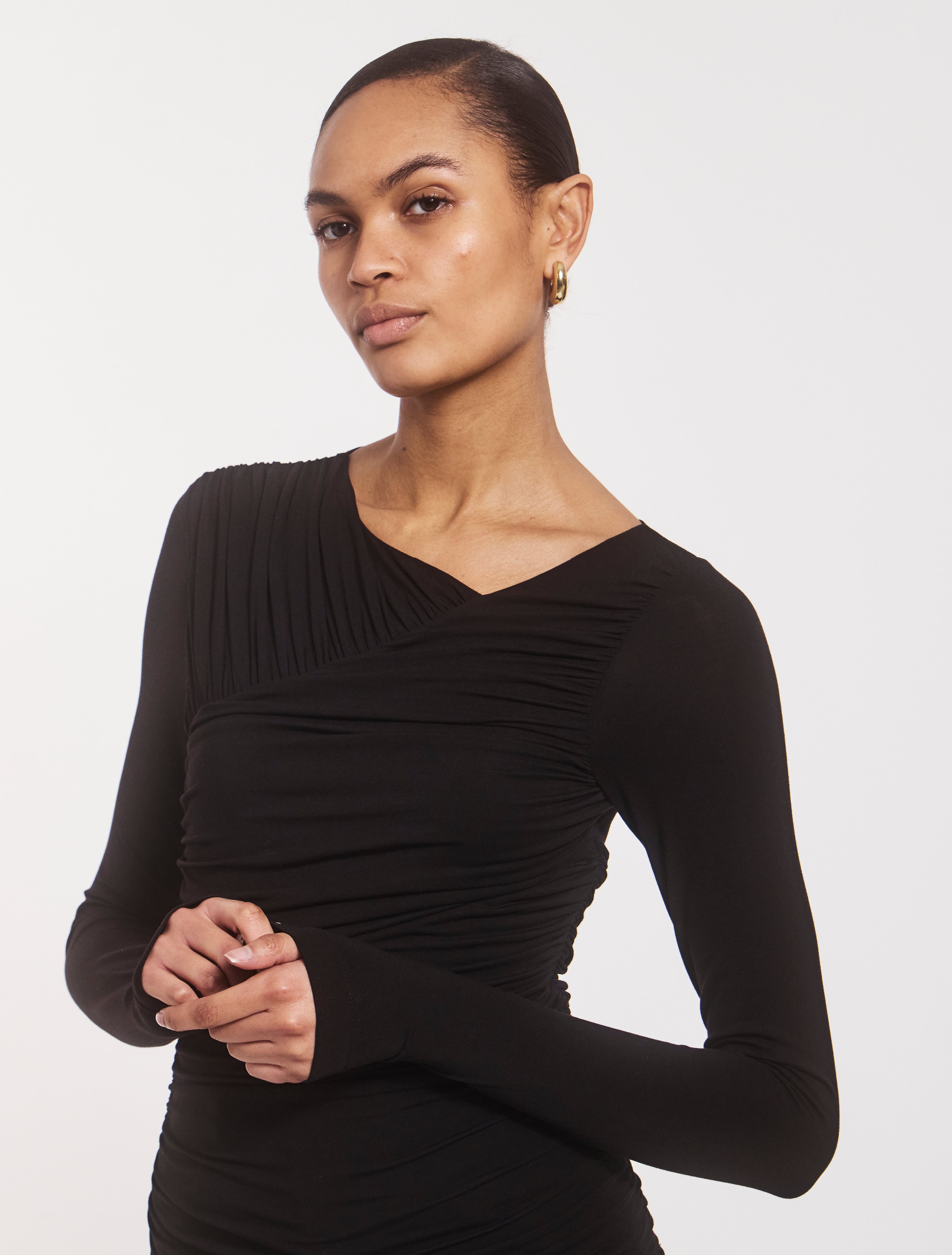 Crafted from soft and sustainable MicroModal, this versatile top has a fitted silhouette, long sleeves, and an asymmetric neckline - making it the perfect addition to your everyday wardrobe. Pair it with your favourite denim for a casual look, or dress it up with tailored trousers and heels.