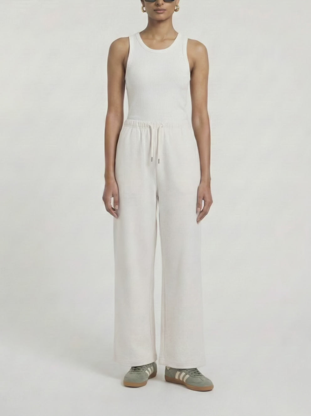 Laid-back style meets elevated comfort. Our wide-leg jogger is cut from an ultra-soft viscose blend with a relaxed silhouette that moves with you. Featuring a mid-rise drawstring waist and deep side pockets, it’s the perfect balance between comfort and style. Pair with your favourite tank for casual days or coordinate with our matching T-shirt.